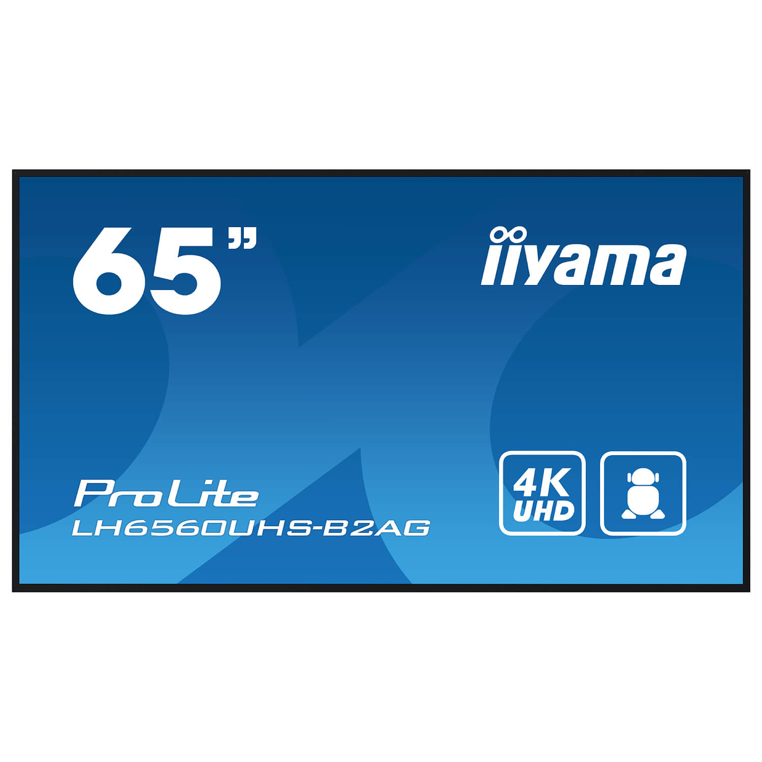 מסך שילוט דיגיטלי ProLite LH6560UHS-B2AG מבית IIYAMA בגודל של 65 אינץ', מתאים לשימוש ממושך 24/7, עם פאנל VA ברזולוציית 4K, מערכת הפעלה Android 11 ומערכת ניהול תוכן iiSignage מובנית.
