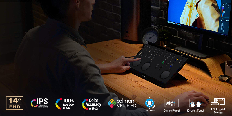 ASUS ProArt PA148CTV הוא מסך נישא בגודל 14 אינץ' FHD עם 10 נקודות מגע המיועד ליוצרים.