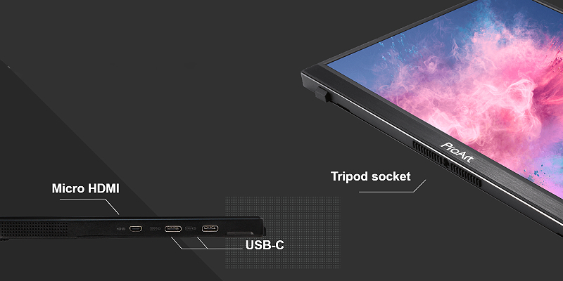 יציאת ה-Micro-HDMI מספקת חיבור למקורות כניסה שונים, בעוד שחריץ החצובה מאפשר לך להתקין את ה-PA148CTV על חצובה.