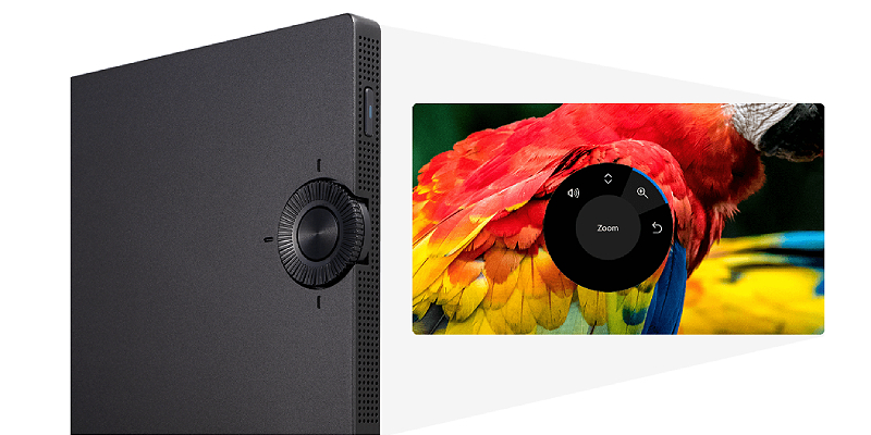 ה-ASUS Dial הוא כפתור פיזי על תצוגות ProArt שעובד באופן חלק עם תוכנות יצירתיות ועם בקרי Microsoft Surface Dial,