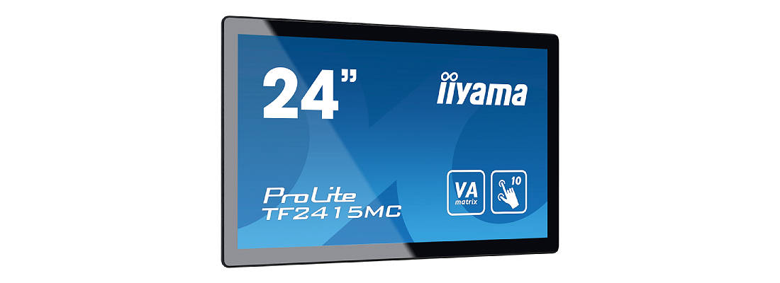 מסך מגע Open Frame מבית IIYAMA בגודל 24 אינץ' עם פאנל VA ברזולוציית FHD, טכנולוגיית מגע PCAP עם 10 נקודות מגע וציפוי ננו נגד טביעות אצבע.