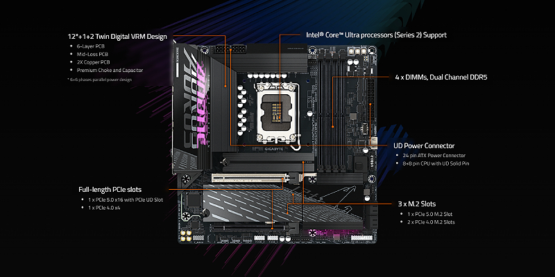 Gigabyte B860M AORUS ELITE WIFI6E, D5 Bionic Corsa for Infinite Memory Performance, Supports Intel Core Ultra processors (Series 2) GB860MAORUSELITEWIFI6E