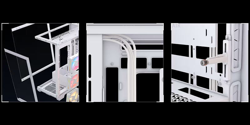 ניהול כבלים – מרווח פנימי של 38 מ"מ מאחורי לוח האם מאפשר ניתוב כבלים קל, וסט גומיות DoubleShot מבטיח מראה נקי ומסודר.
