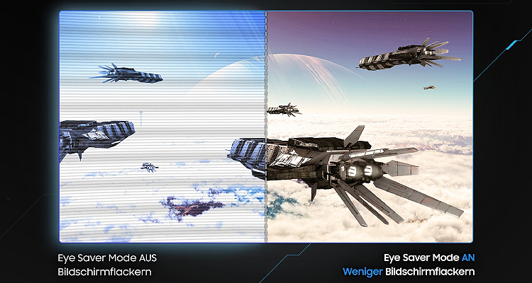 מצב Eye Saver המודרני, בעל אישור TÜV, מפחית את פליטת האור הכחול ומגן על העיניים שלך גם במהלך שעות משחק ארוכות.