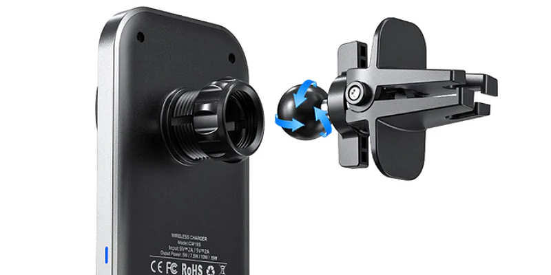 הסיבוב של 360 מעלות מאפשר מעבר חלק בין מצב אנכי ואופקי, בעוד שהעיצוב הקומפקטי שלו מתאים לפתחי האוורור של רוב המכונית.