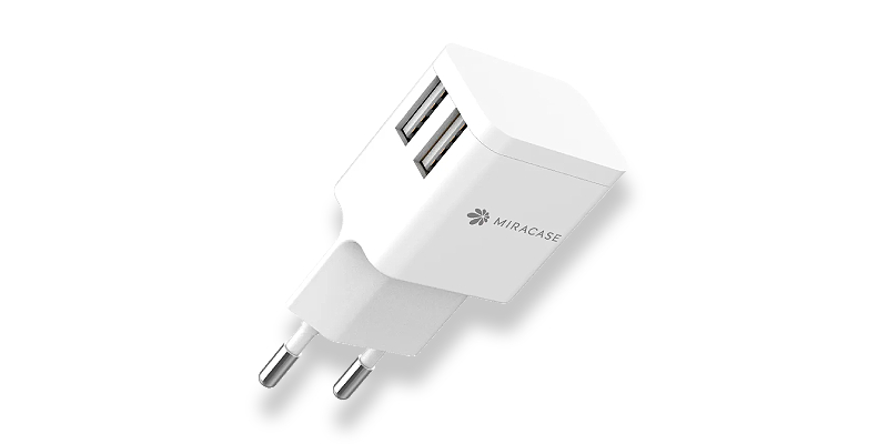 מטען קיר איכותי בעל 2 כניסות USB מבית Miracase, מאפשר טעינה של עד שני מכשירים בו זמנית, קומפקטי ומציע אמינות ועמידות גבוהה. MWC244