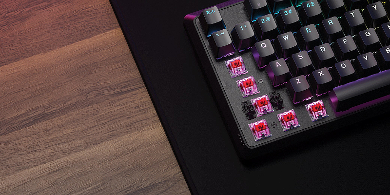 שחק והקלד עם מתגים מכאניים ליניאריים משומנים מראש של CORSAIR MLX Red v2, להקשות חלקות ומגיבות במיוחד.