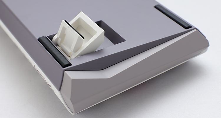 רגלי המקלדת הן דו-שלביות ומאפשרות להציב את המקלדת בשלוש זוויות הטיה שונות.