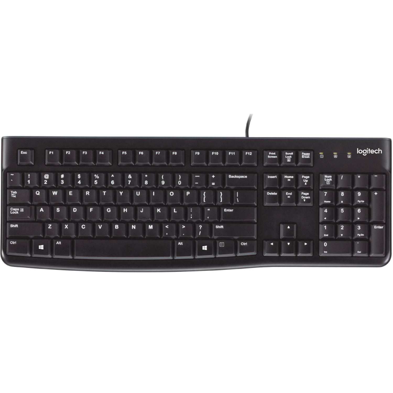 Logitech K120 USB Keyboard Black 920-002582 corded is reliable and durable, equipped with a number pad with an easy-to-use design that works right out of the box.
