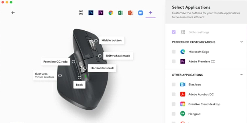 עבוד על פני מכשירים ומערכות הפעלה באמצעות Flow, התאם אישית לחצנים, הגדר מהירות, השתמש בהתאמות ספציפיות לאפליקציות מוגדרות מראש ובפעולות חכמות כדי לייעל כמעט כל היבט.