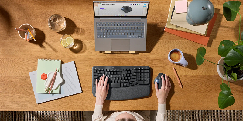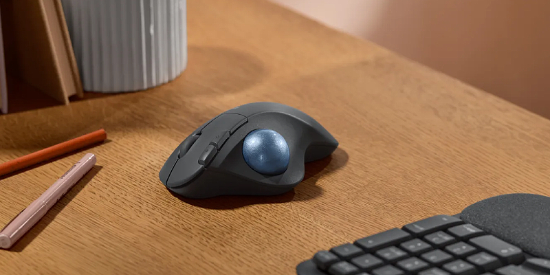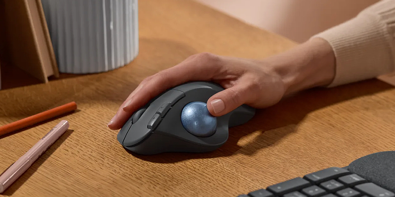 הפחת תנועות והגבר את הנוחות שלך עם עכבר ה־Trackball האלחוטי ERGO M575S – כעת עם קליקים שקטים.