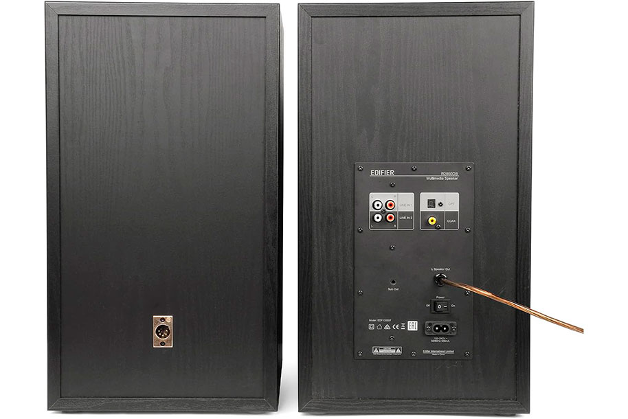זוג רמקולים Edifier 2.0 R2850DB המגיעים עם מגבר מובנה בתקן CLASS-D, "עיבוד אות דיגיטלי" (DSP) ובולטוס בתקן 5.1 עם צ'יפ aptX למניעת הפרעות.